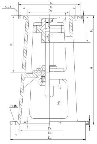 | d1 | M | d2 | d3(K6) | h1 | h2 | h3 | h4 | h5 | h6 | b | b1 | t | t1 | H1 | H2 | D3 | D2 | D1 | n1-φ1 | D4 | ||