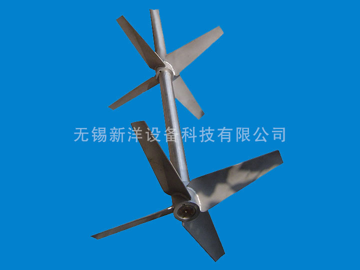 有平槳式和斜槳式兩種。平槳式攪拌器由兩片平直槳葉構(gòu)成。槳葉直徑與高度之比為 4~10,圓周速度為1.5~3m/s,所產(chǎn)生的徑向液流速度小。斜槳式攪拌器的兩葉相反折轉(zhuǎn)45°或60°,因而產(chǎn)生軸向液流。槳式攪拌器結(jié)構(gòu)簡(jiǎn)單,常用于低粘度液體的混合以及固體微粒的溶解和懸浮。
